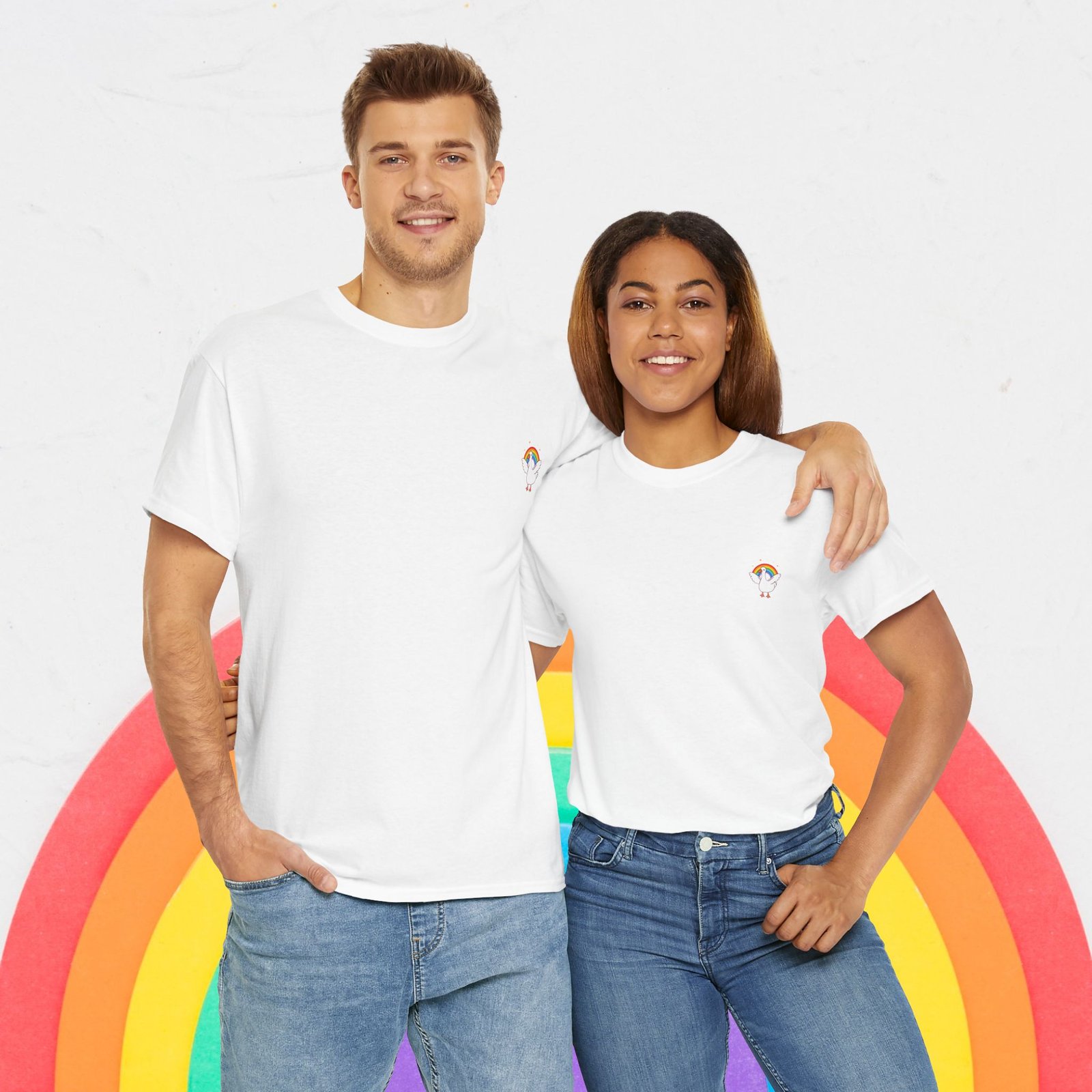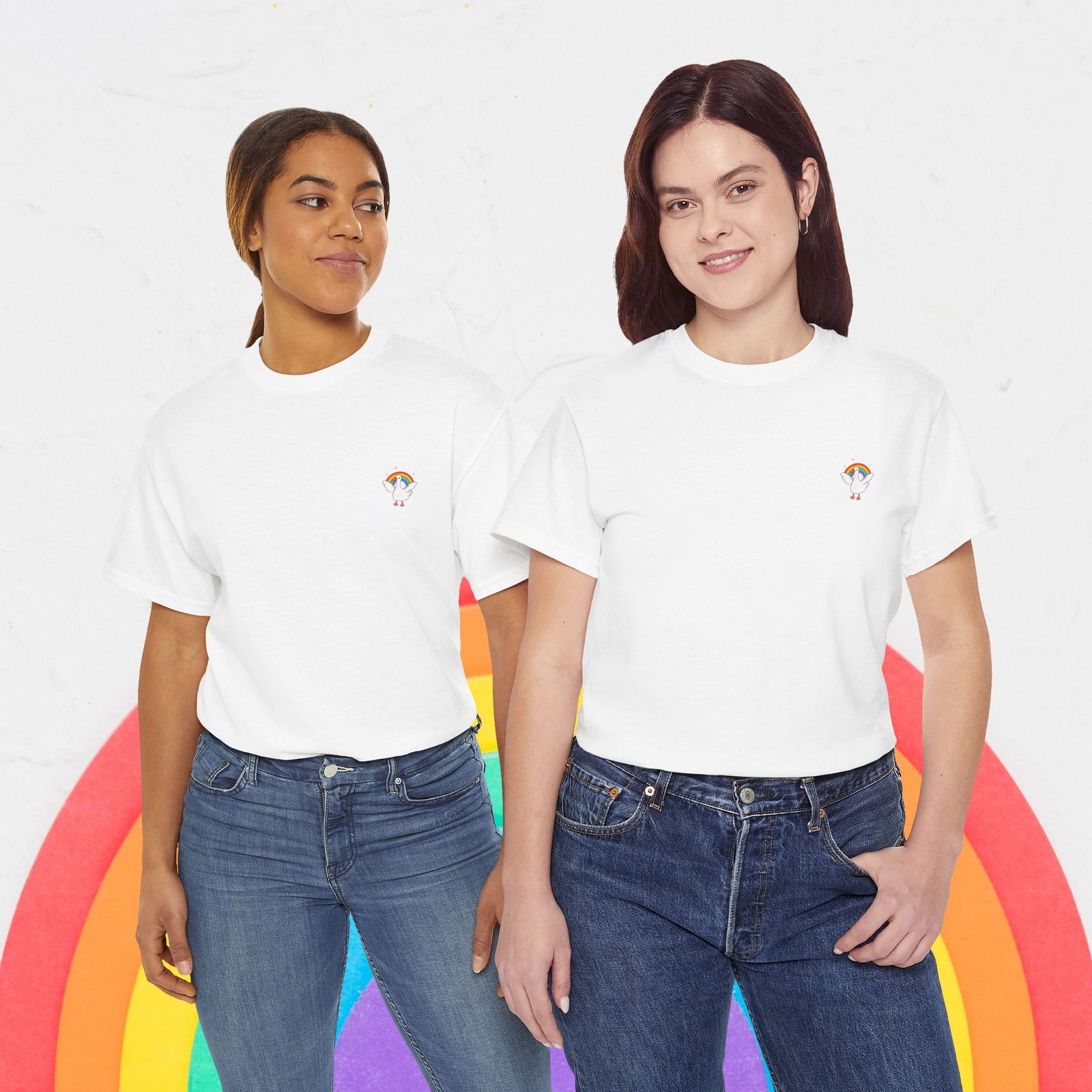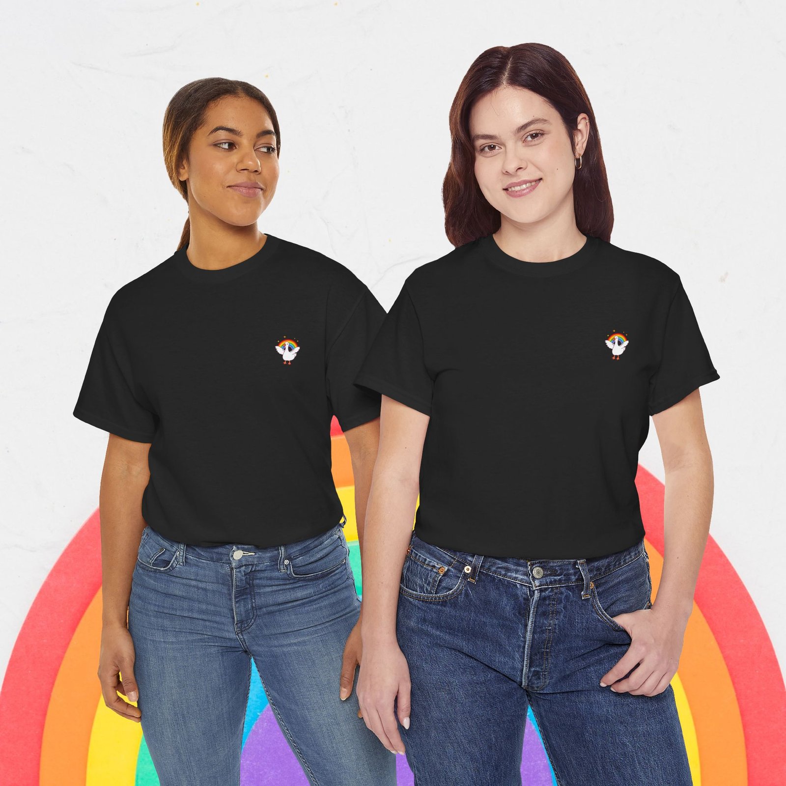【Cute Rainbow goose Tee, , Women Tee, Rainbow heart Pride shirt, Pride Day Tee, Men Tee, Asexual Tee, Unisex, Pride T-shirt, Gift for Her, Unisex Tee, LGBTQ+, Equality】