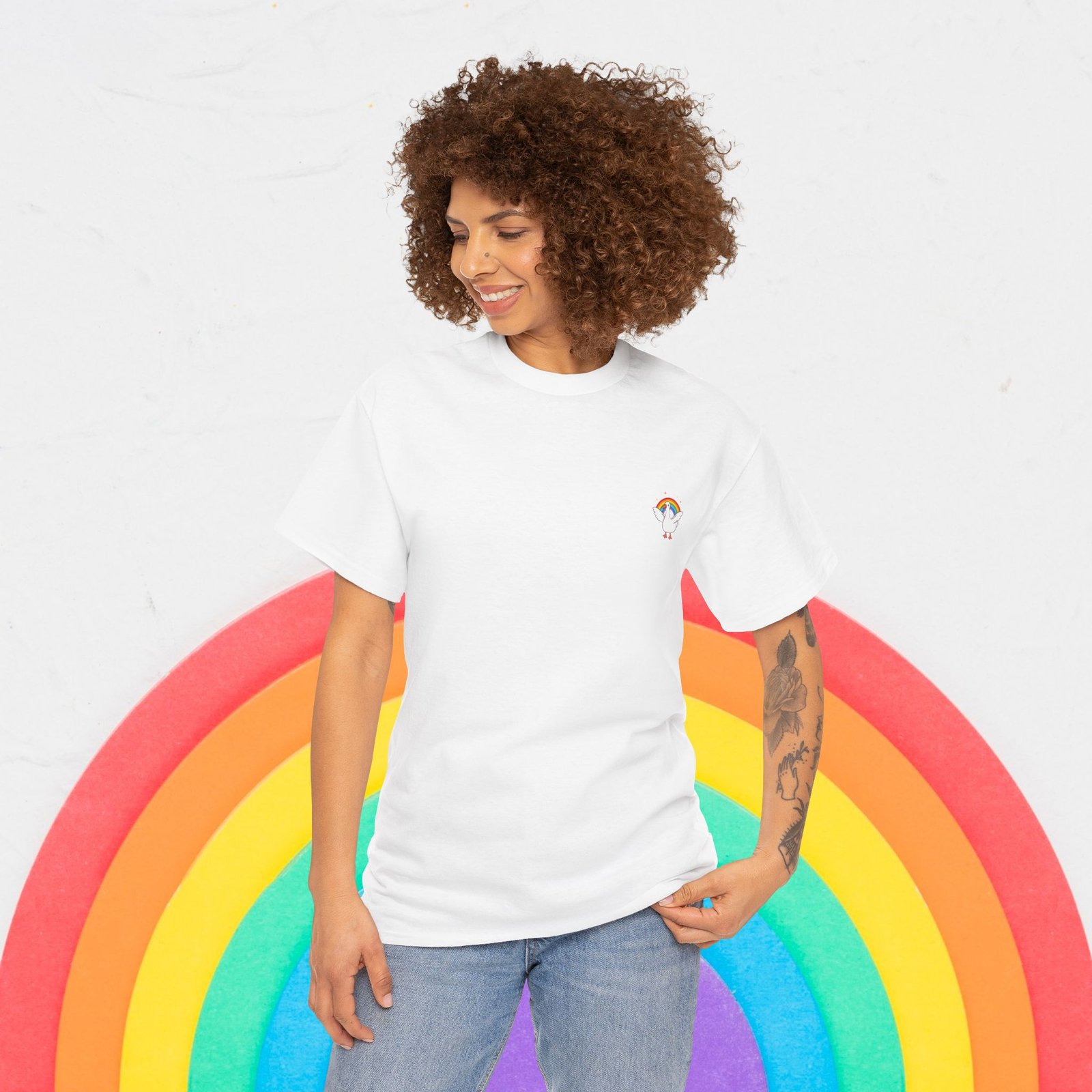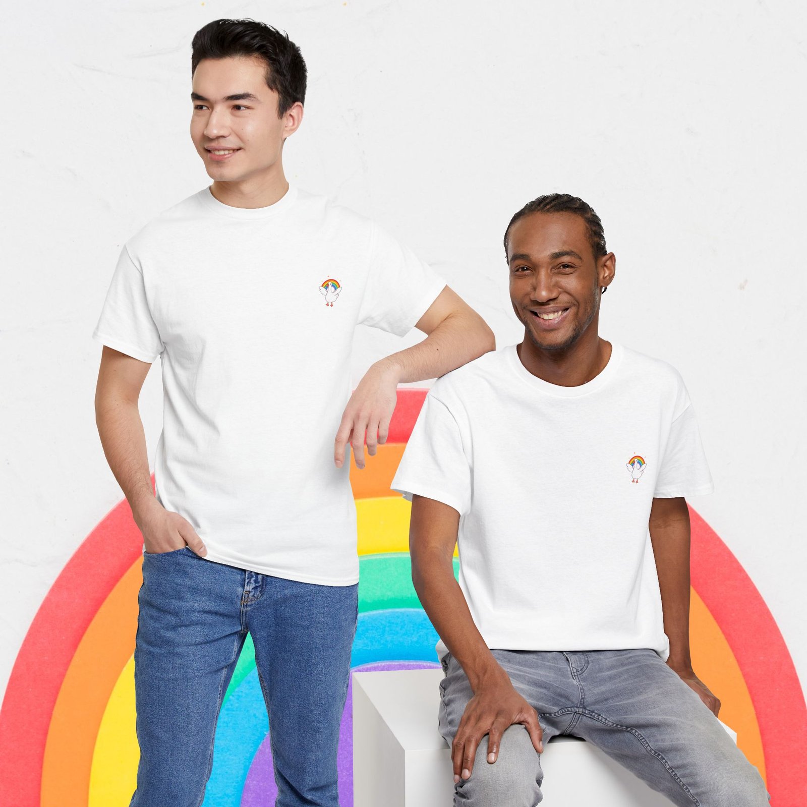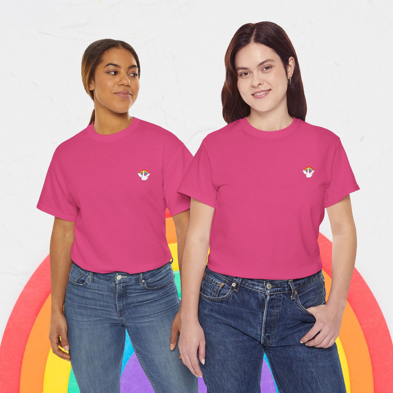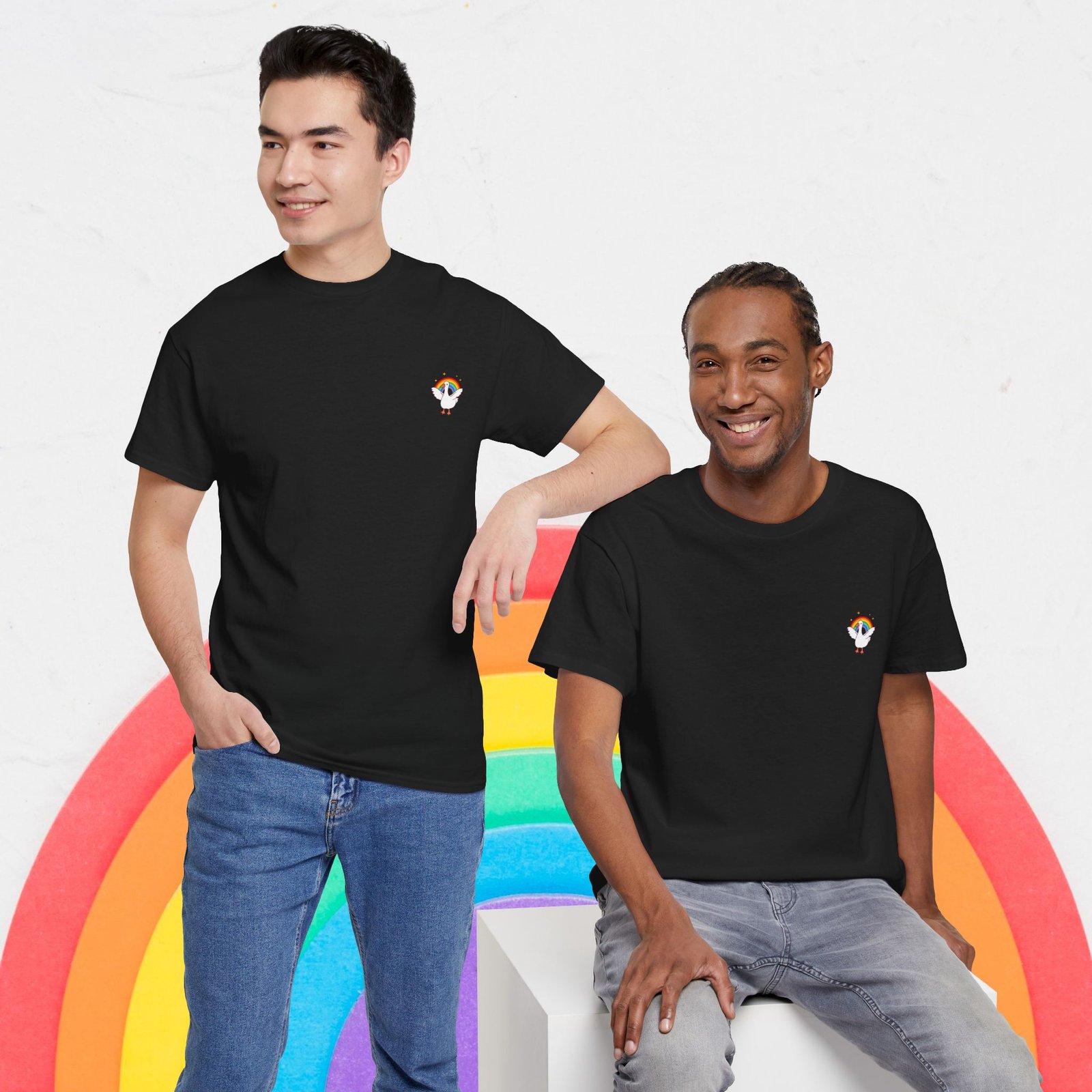 【Cute Rainbow goose Tee, , Women Tee, Rainbow heart Pride shirt, Pride Day Tee, Men Tee, Asexual Tee, Unisex, Pride T-shirt, Gift for Her, Unisex Tee, LGBTQ+, Equality】