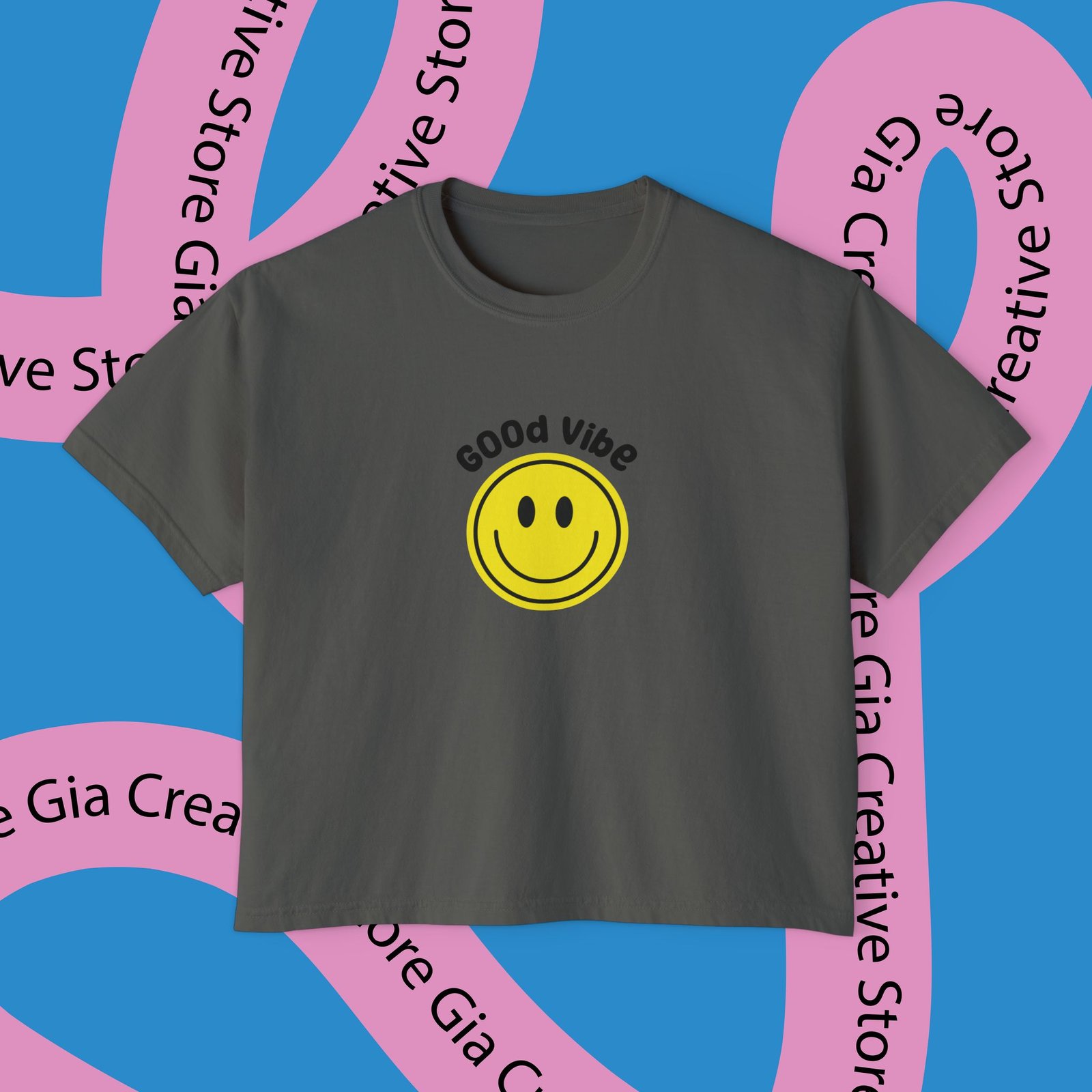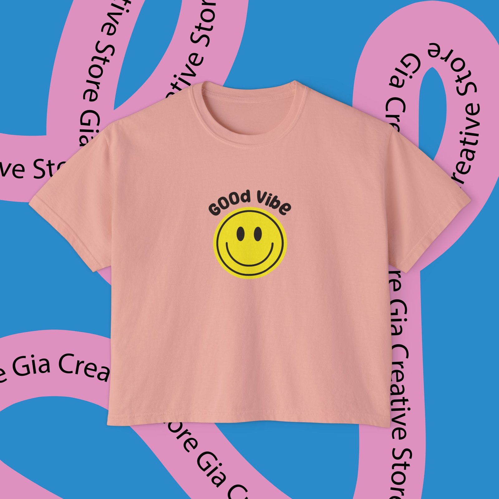 【Comfort colors Good Vibes Women’s Boxy Tee , Summer Top,Positive Quote Shirt, Smiley Face Shirt, Happy Vibes Shirt】