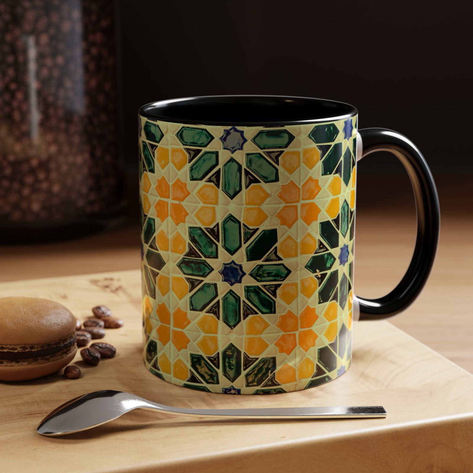 Vintage style Spanish Tile pattern Mug with a Mediterranean design. Perfect for those who love rustic handmade tile decor. This mug creates a cozy and charming atmosphere, ideal for enjoying a cup of coffee or tea. Great for anyone who appreciates unique and artistic home decor. Relevant for holidays and occasions with a rustic or Mediterranean theme.